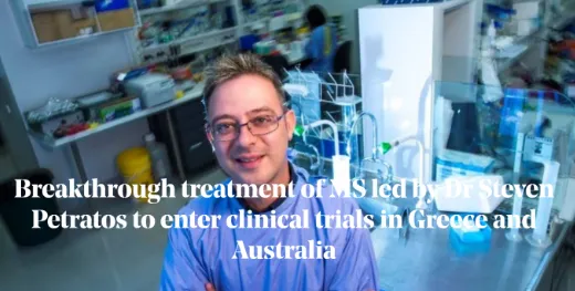 Media Transforming life through groundbreaking research and development Researchers discover potential cure for MS Breakthrough treatment of MS led by Dr Steven Petratos to enter clinical trials in Greece and Australia An interview with Dr Steven Petratos (in Greek language)