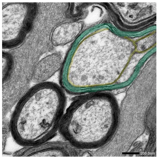 In a healthy neuron, myelin protects nerve fibres, like insulation around a wire