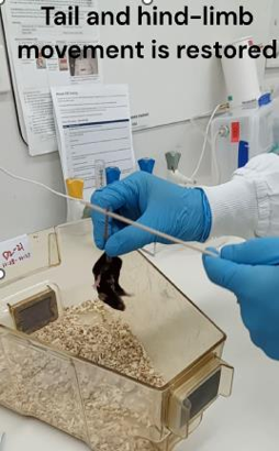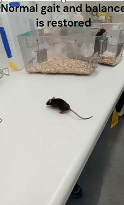 Day 30 during the MS-like disease course (15 days after daily oral treatment with DioprotectomeTM): The mouse’s tail and hind-limb functions were restored and showed significant improvement in walking